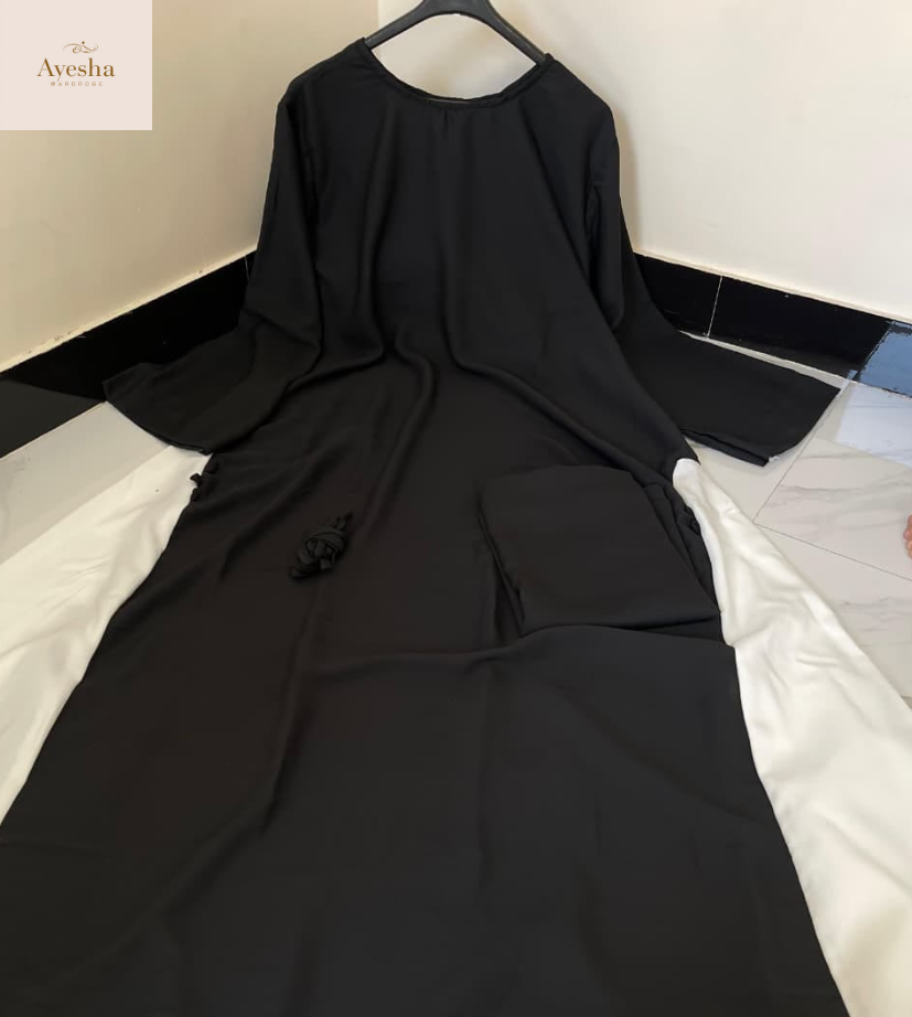 Made from luxurious wool peach fabric, this abaya offers a smooth texture, graceful fall, and comfortable wear for all-day elegance.
