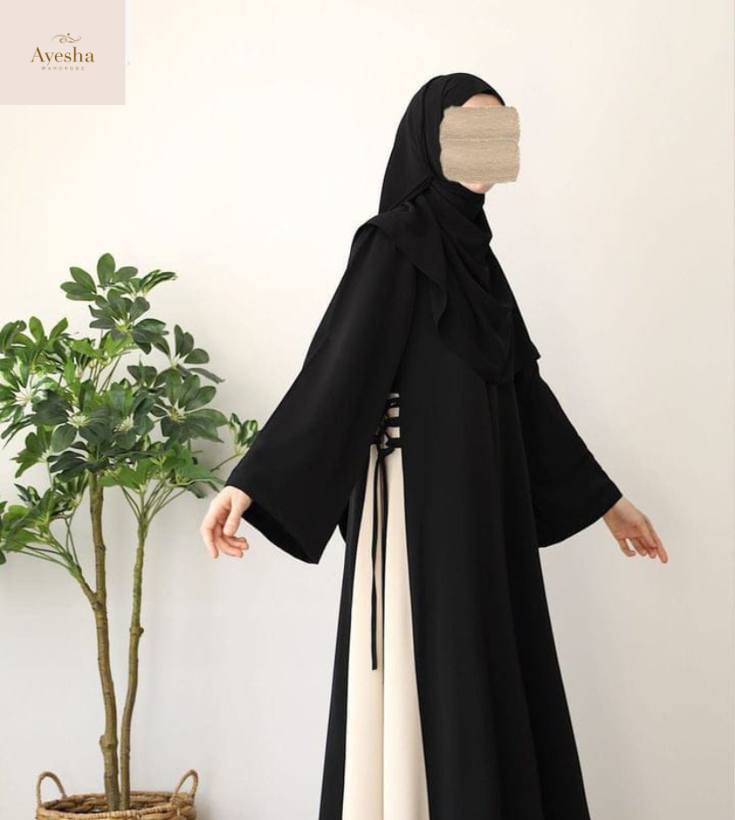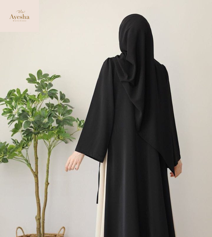 Introducing the Black Emma Abaya with Stoller, a perfect blend of modesty and elegance.