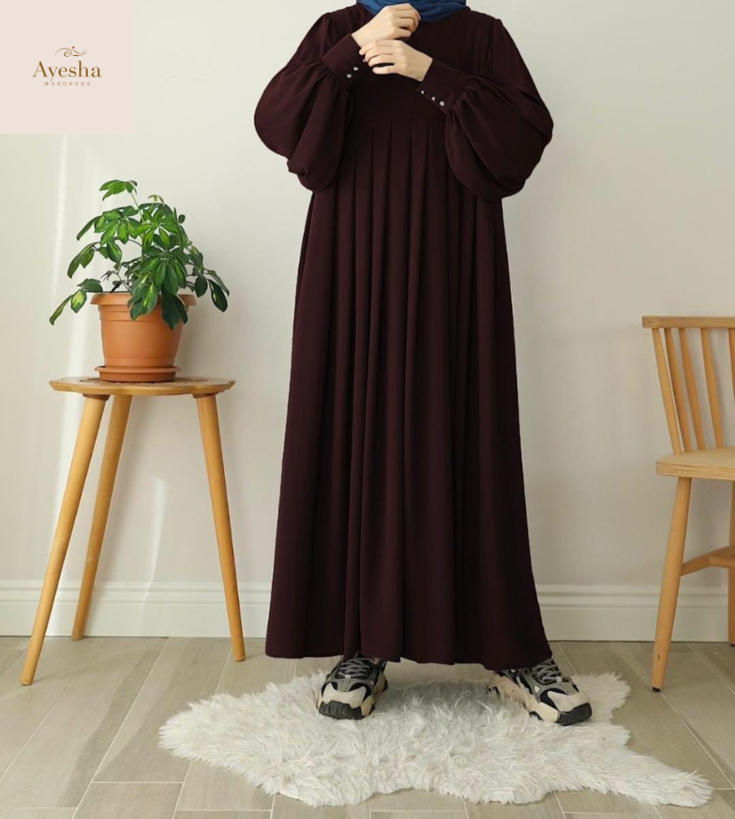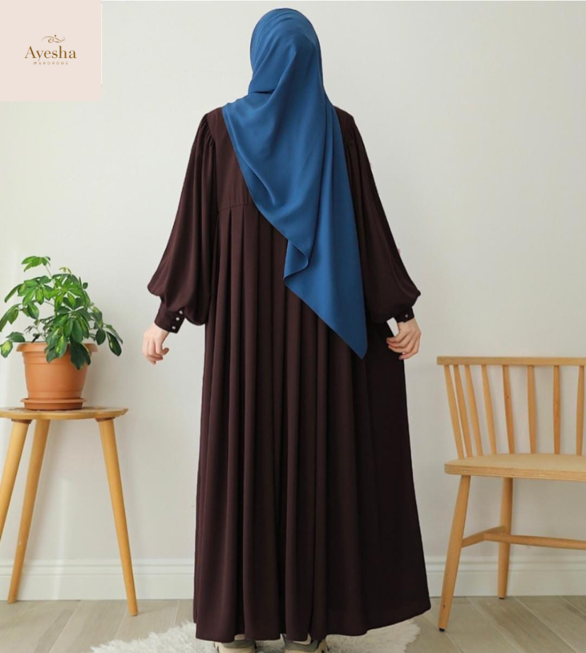 Add a touch of elegance to your modest wardrobe with this Brown Elegant Abaya with Stoller, beautifully tailored from high-quality wool peach fabric.