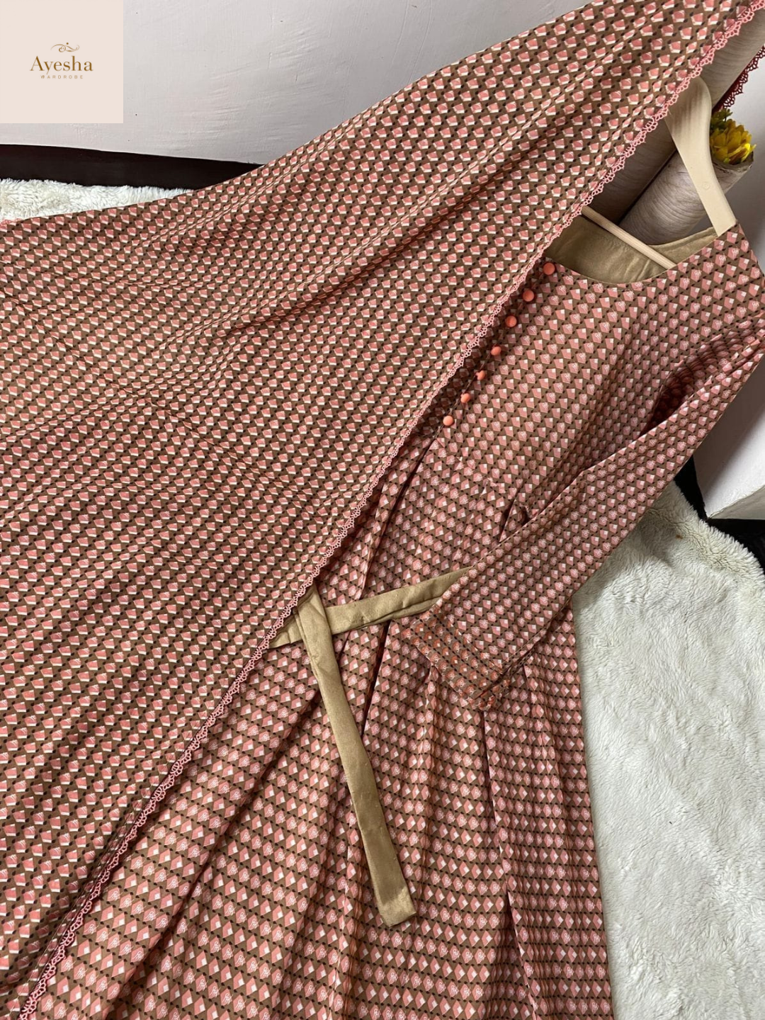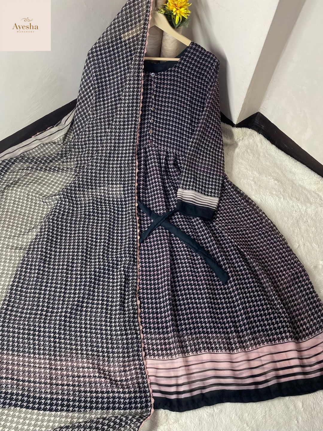 Step into timeless elegance with our Chiffon Maxi with Matching Dupatta, beautifully detailed with fine lace work. Crafted from premium China Chiffon and lined with a comfortable Malai inner, this ensemble offers both luxury and ease. With a chest size of 20/21 inches, length of 46 inches, and a 2-yard matching dupatta, it ensures a graceful, flattering fit. Perfect for festive events, formal gatherings, or evening wear, this outfit blends sophistication with simplicity, creating a stunning look for every occasion.