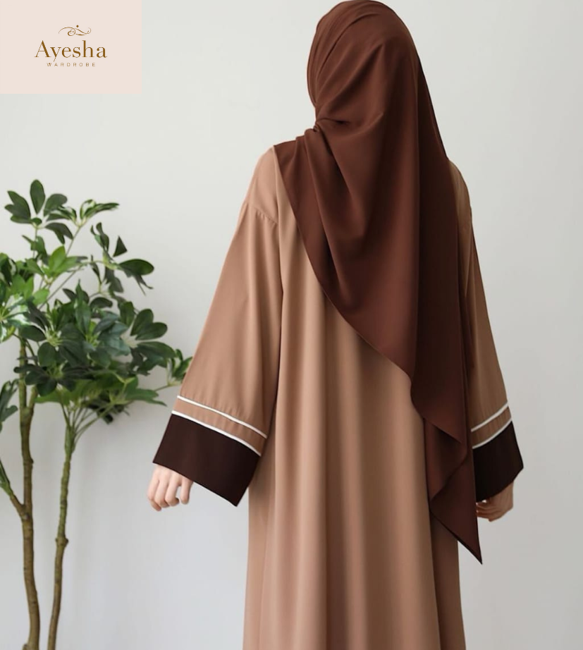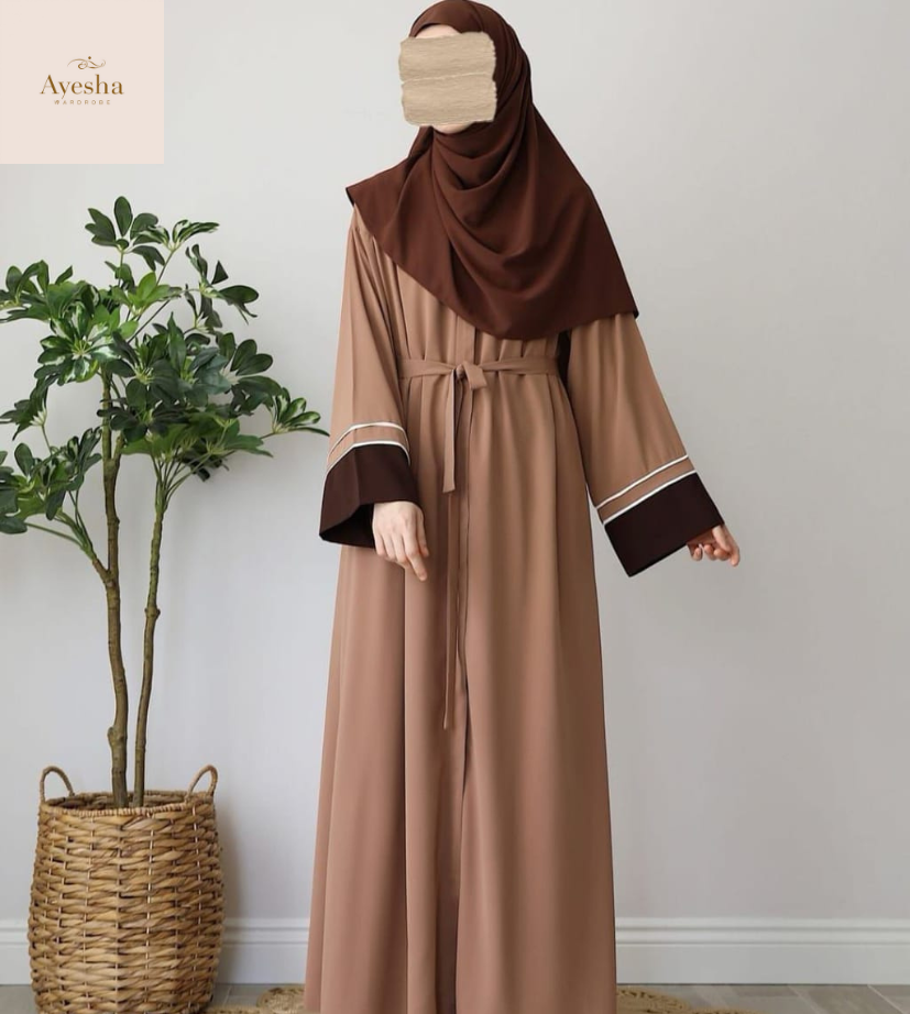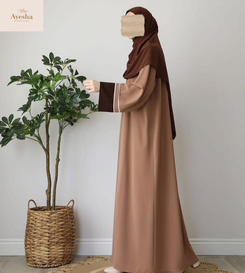 Elevate your modest fashion with the Crown Abaya with Stoller, beautifully tailored from premium wool peach fabric for a luxurious and graceful drape.