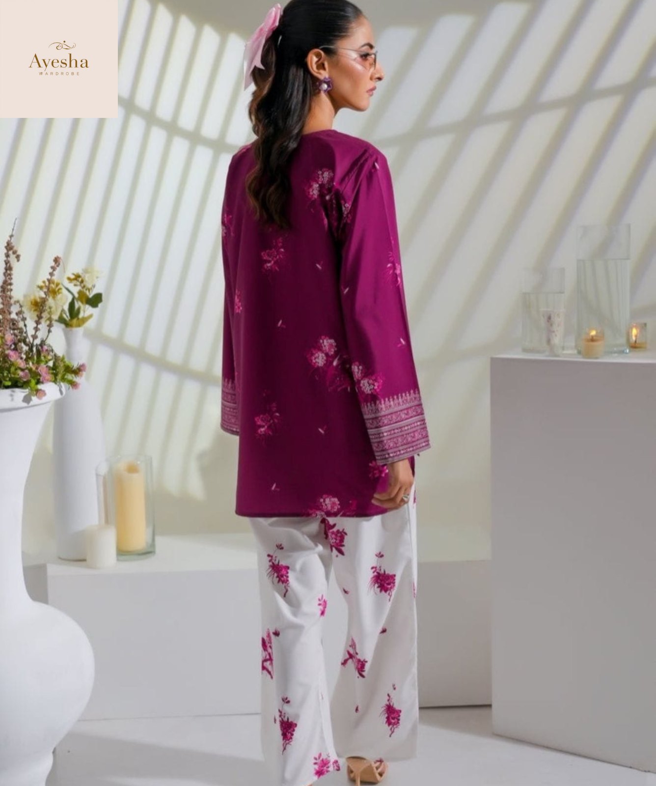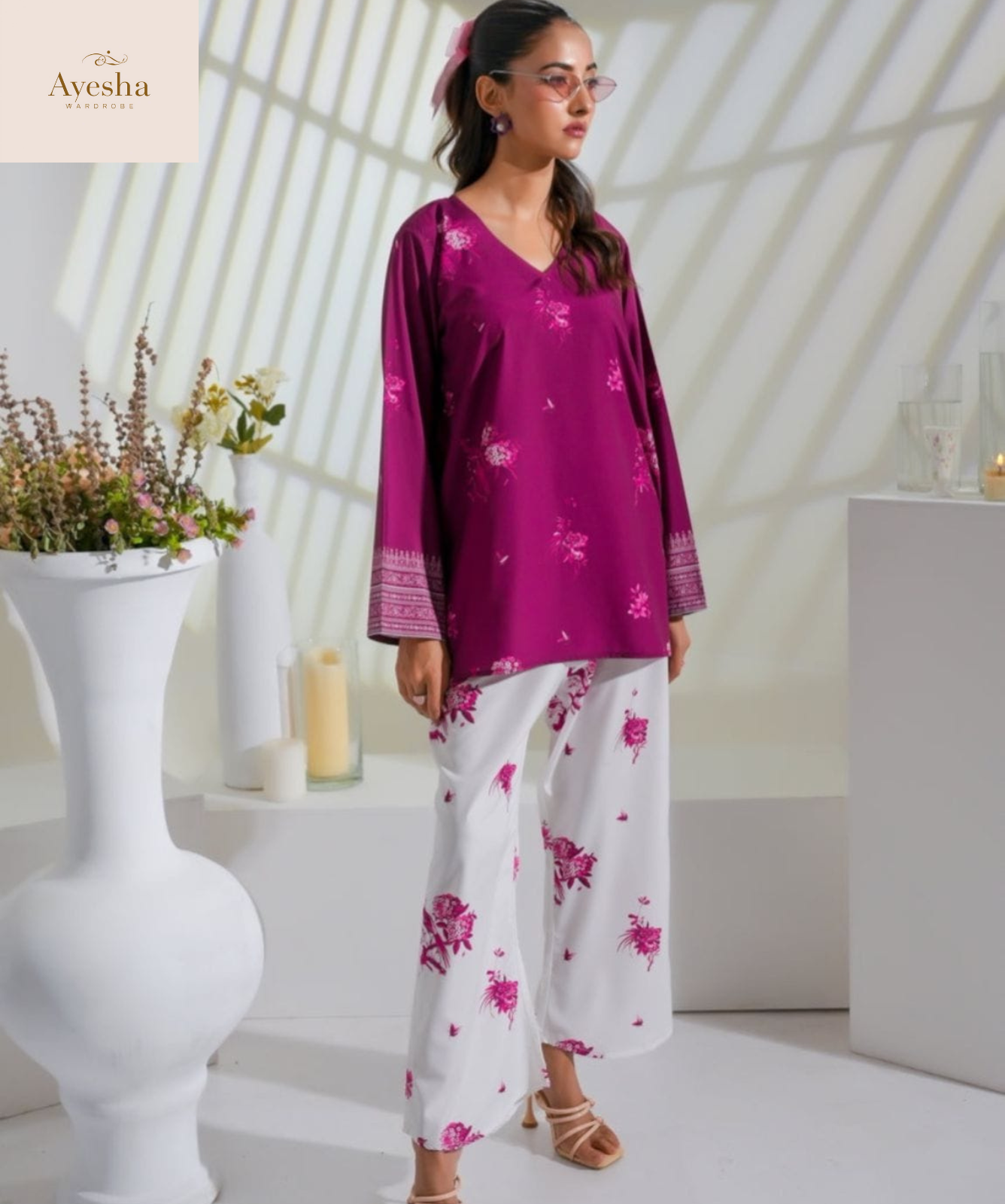 This Digital Printed Cord Set is the perfect blend of comfort and style. Crafted from premium Swiss Lawn fabric, it offers a soft, breathable, and lightweight feel ideal for everyday wear. The vibrant digital prints add a touch of elegance and charm, making it suitable for both casual and semi-formal occasions. The shirt features a chest size of 21/22 inches with a length of 35/36 inches, paired with a flyper length of 38/39 inches for a perfect fit. A stylish and comfortable outfit that brings effortless grace to your wardrobe.