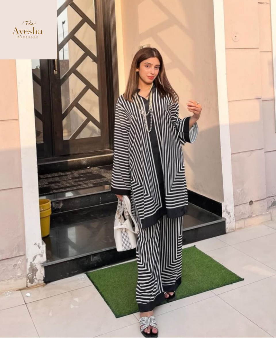 Enhance your wardrobe with our Digital Printed Cord Set, designed to combine comfort and sophistication. Crafted from high-quality Swiss Lawn fabric, it offers a soft, breathable, and lightweight feel ideal for all-day wear. The vibrant digital prints and premium stitching add a refined touch, while the full overlock finishing ensures durability and a polished look. With a standard size featuring Chest 21″, Shirt Length 35″, and Flyper Length 38″, this outfit captures the perfect balance of modern design and timeless grace — making it your go-to choice for festive occasions or casual gatherings.