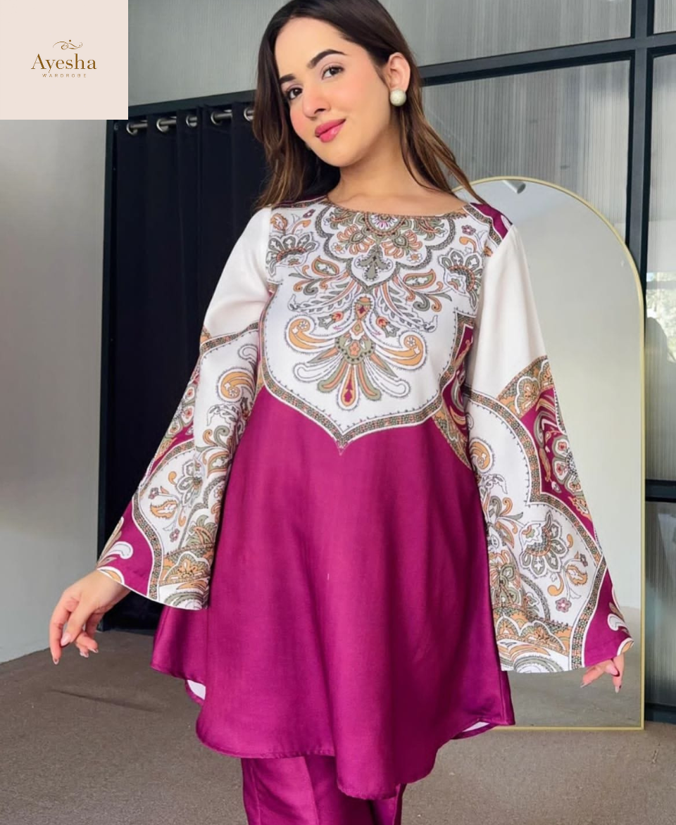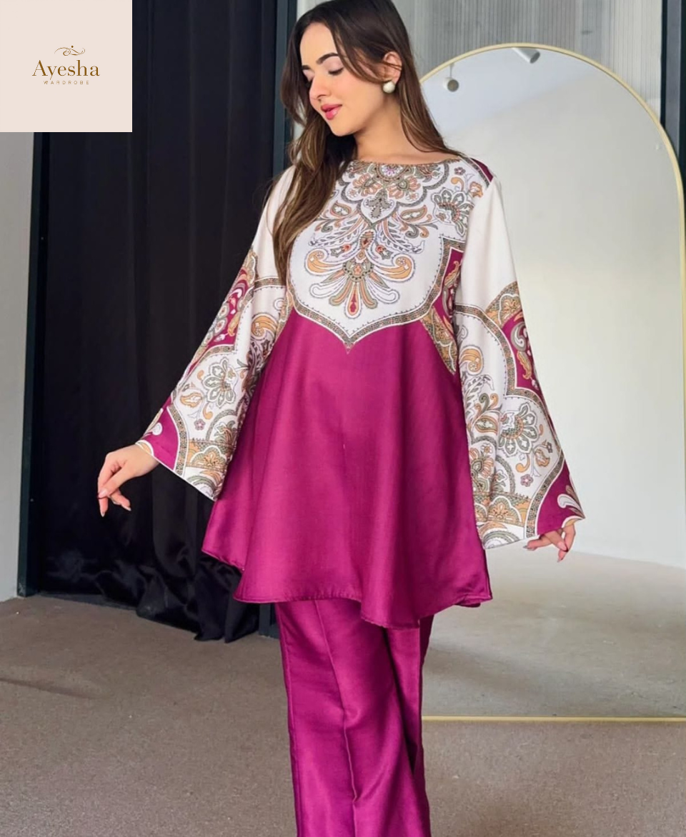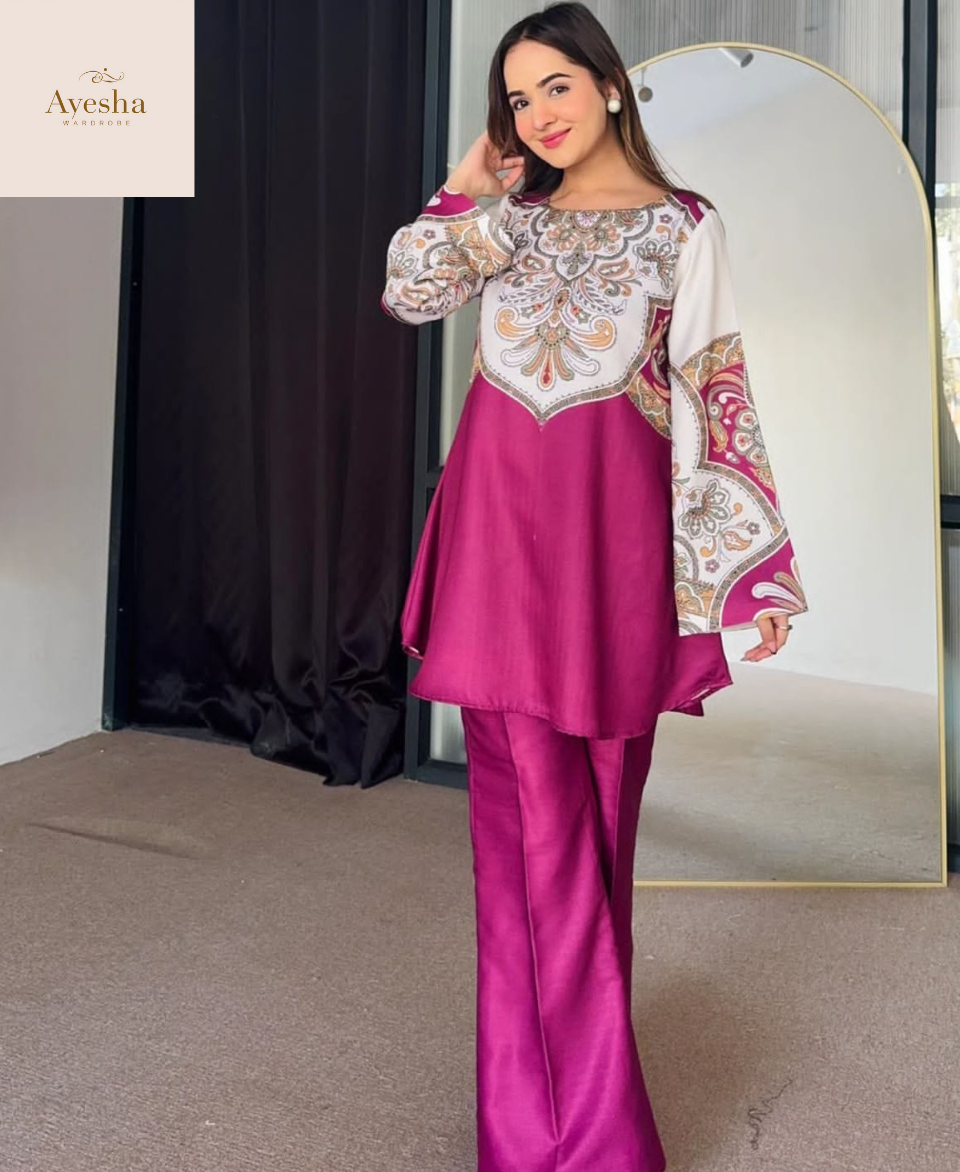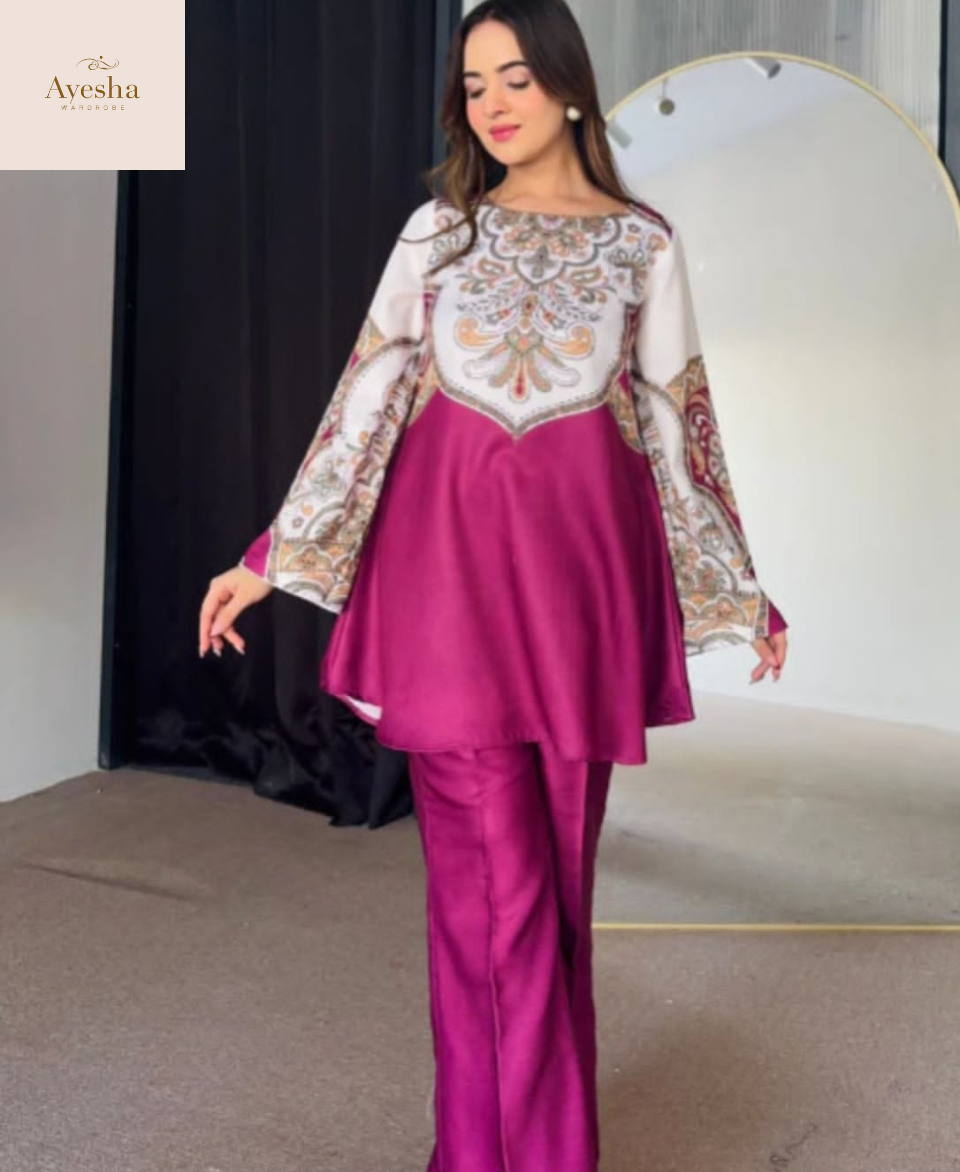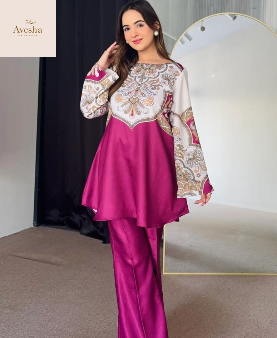 Turn heads with our Digital Printed Cord Set, crafted from premium Swiss Lawn fabric for a soft, breathable, and elegant feel. The outfit features vibrant digital prints, fine-quality stitching, and a full overlock finish for lasting durability and a polished look. Designed in a standard size with a Chest 21″, Shirt Length 34″, and Flyper Length 38″, it ensures both comfort and sophistication. Ideal for casual outings or semi-formal gatherings, this cord set blends modern style with everyday elegance.