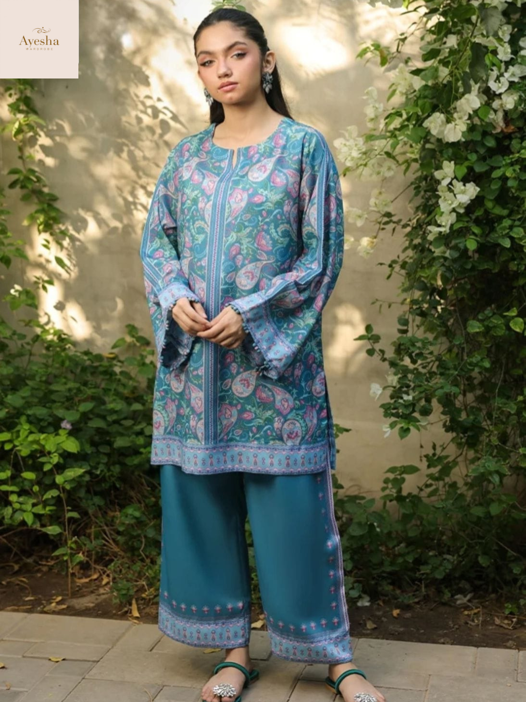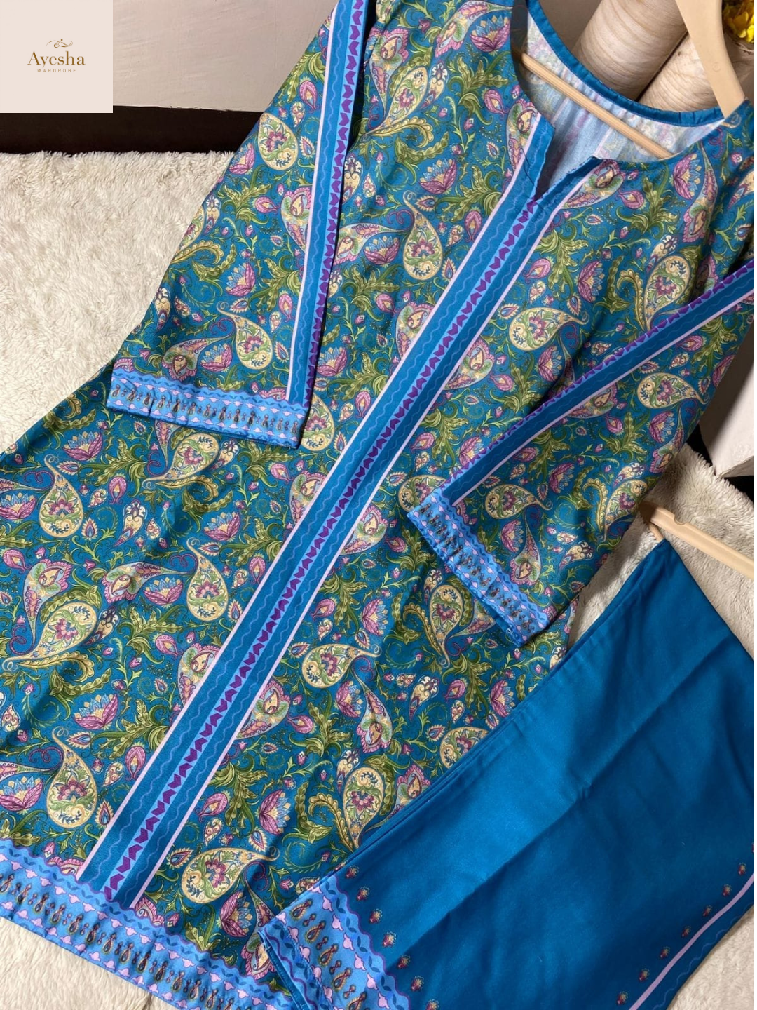Beautifully stitched digital printed cord set crafted from premium Swiss Lawn fabric. Features good quality stitching with full overlock finishing for a refined look.