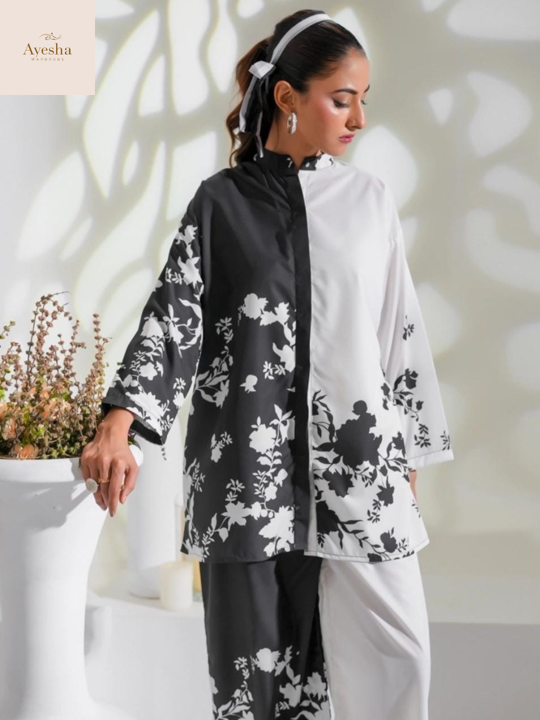 Chic and comfortable digital printed cord set made from soft Swiss Lawn fabric. Designed with good quality stitching and full overlock finishing for a neat, premium look.