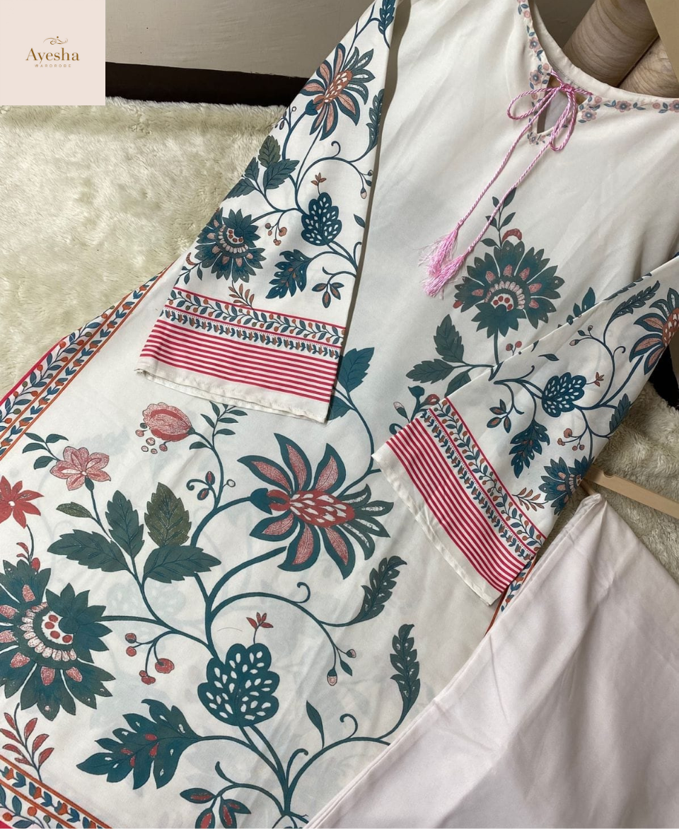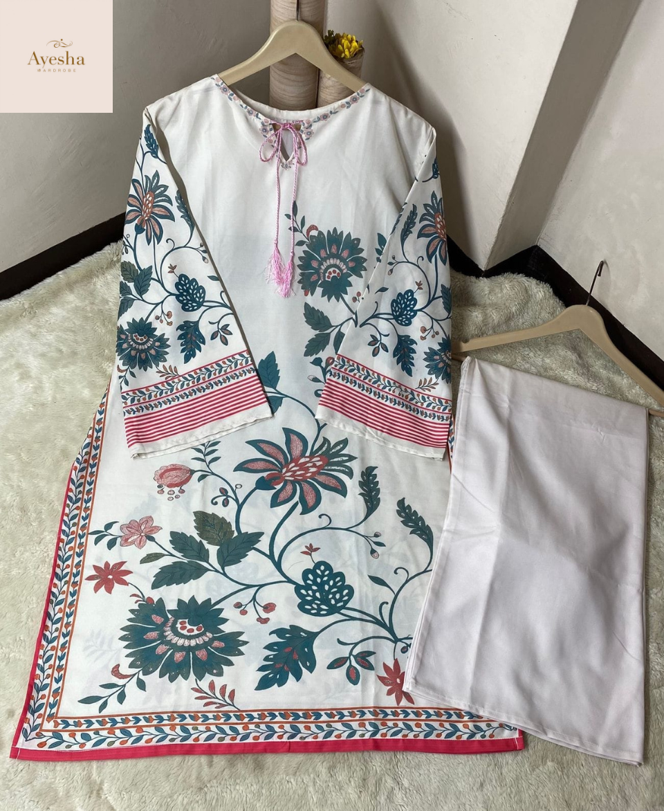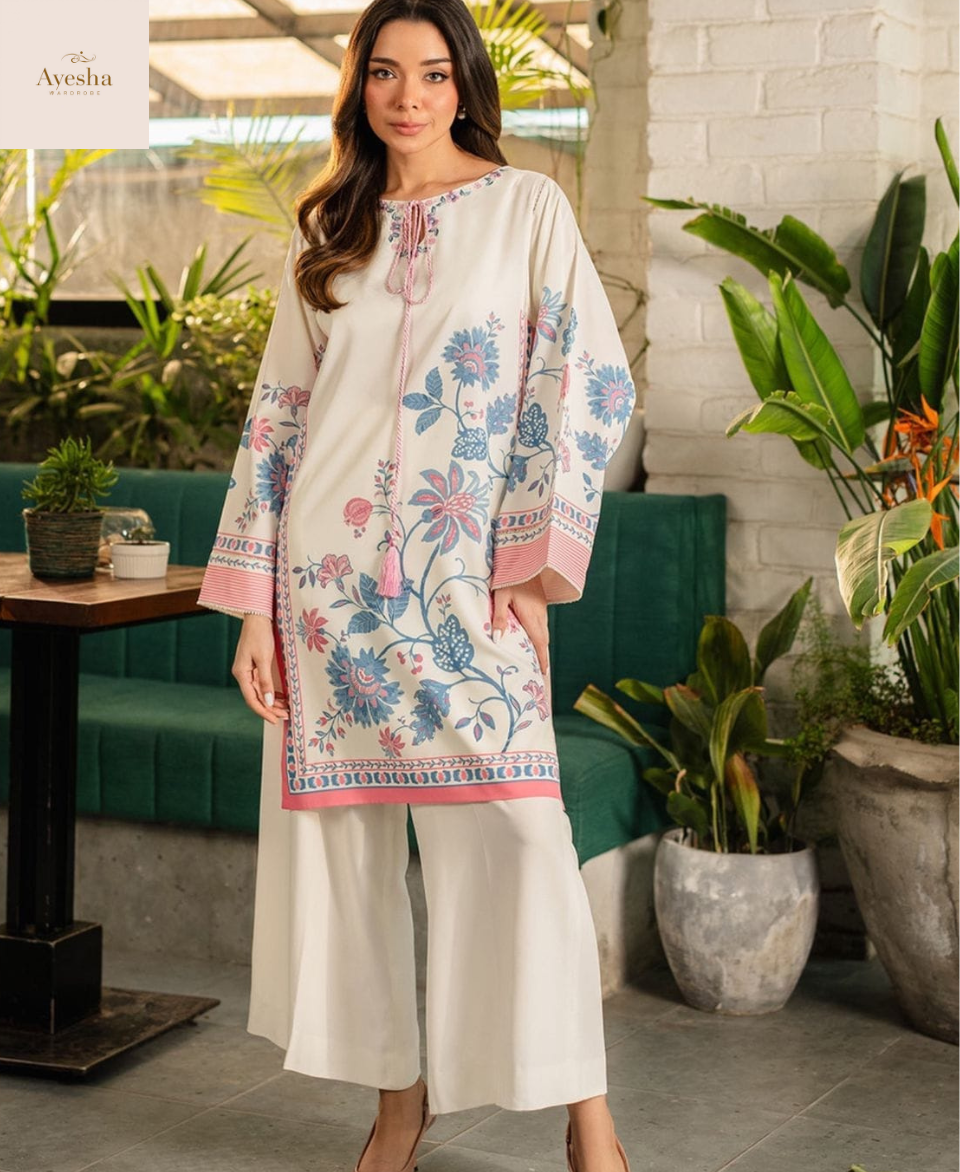 Experience effortless elegance with our Digital Printed Cord Set, crafted from high-quality Swiss Lawn fabric for a soft, breathable, and luxurious feel. Designed with vibrant digital prints and premium-quality stitching, this outfit combines comfort with refined style. The full suit is neatly overlocked, ensuring durability and a polished finish. With a standard size featuring Chest 21/22 inches, Shirt Length (Front) 38/39 inches, and Flyper Length 39/40 inches, this set delivers the ideal blend of modern design and traditional charm — perfect for festive events, casual gatherings, or smart everyday wear.