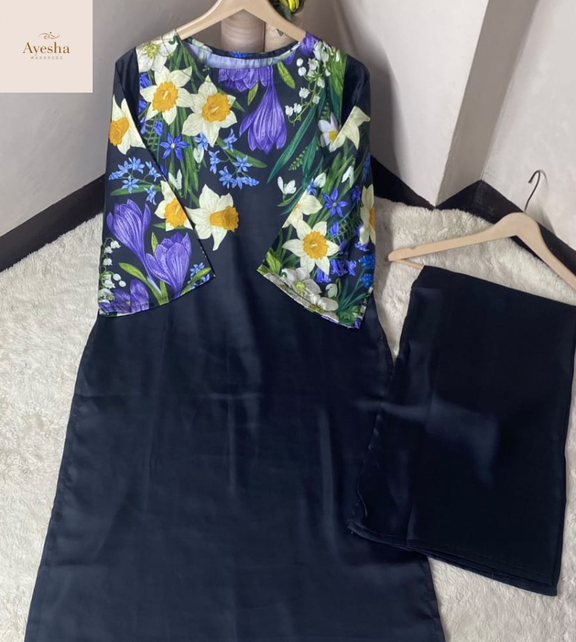 The Digital Printed Long Kurta Set is crafted from luxurious Shamoze Silk, offering a smooth, elegant, and comfortable feel. Designed with beautiful digital prints, it brings a touch of sophistication to your look. The set features a chest size of 20/21 inches, shirt length of 50 inches, and a flyper length of 38/39 inches, ensuring a perfect and graceful fit. Ideal for both casual gatherings and festive occasions, this outfit blends style and comfort effortlessly.