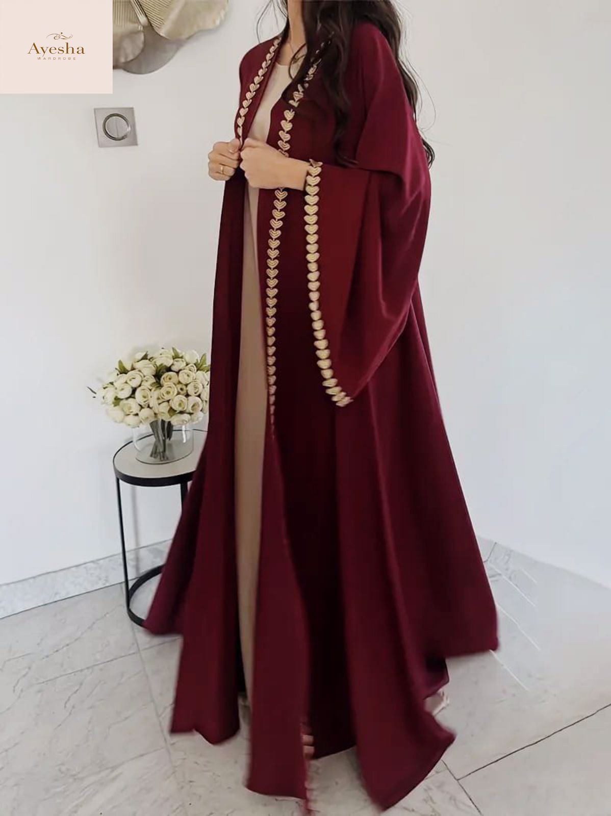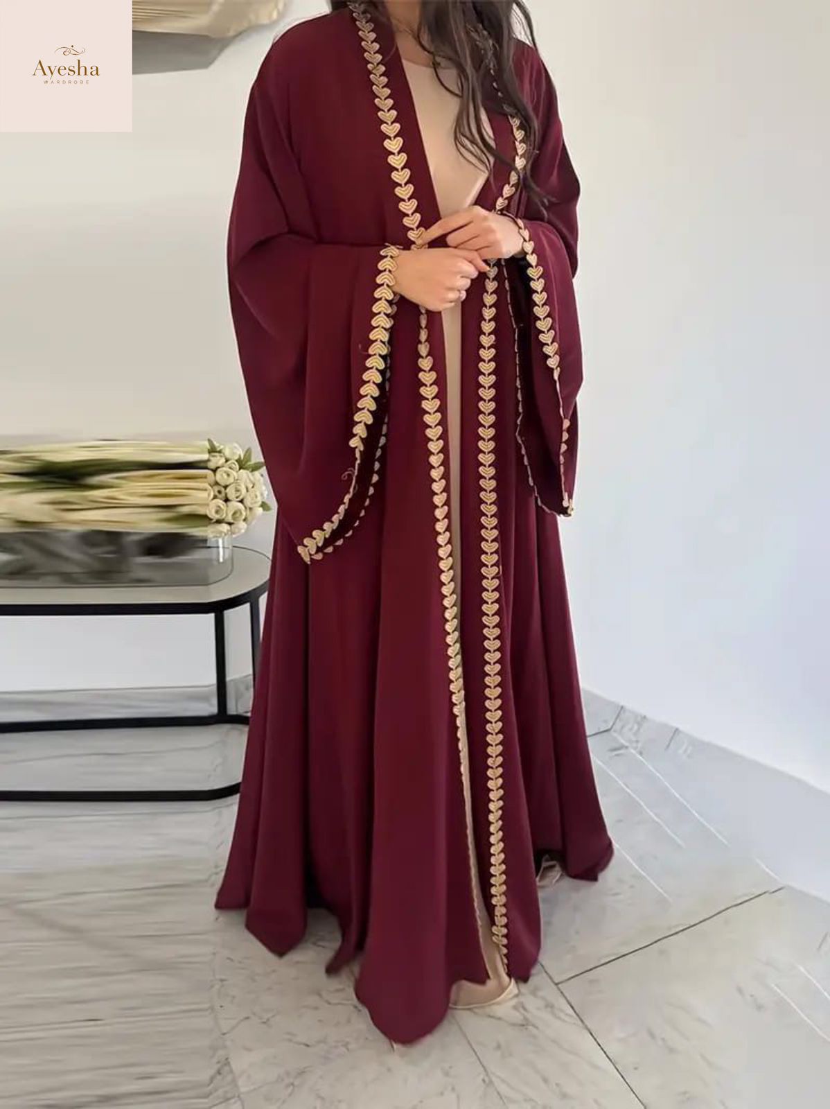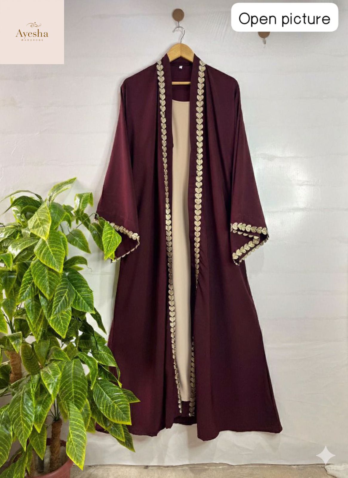 Elegant and graceful DIL-E-NOOR Abaya crafted from premium Whool Peach fabric. Designed for a modest yet stylish look, it offers a soft and comfortable feel perfect for daily wear or special occasions.