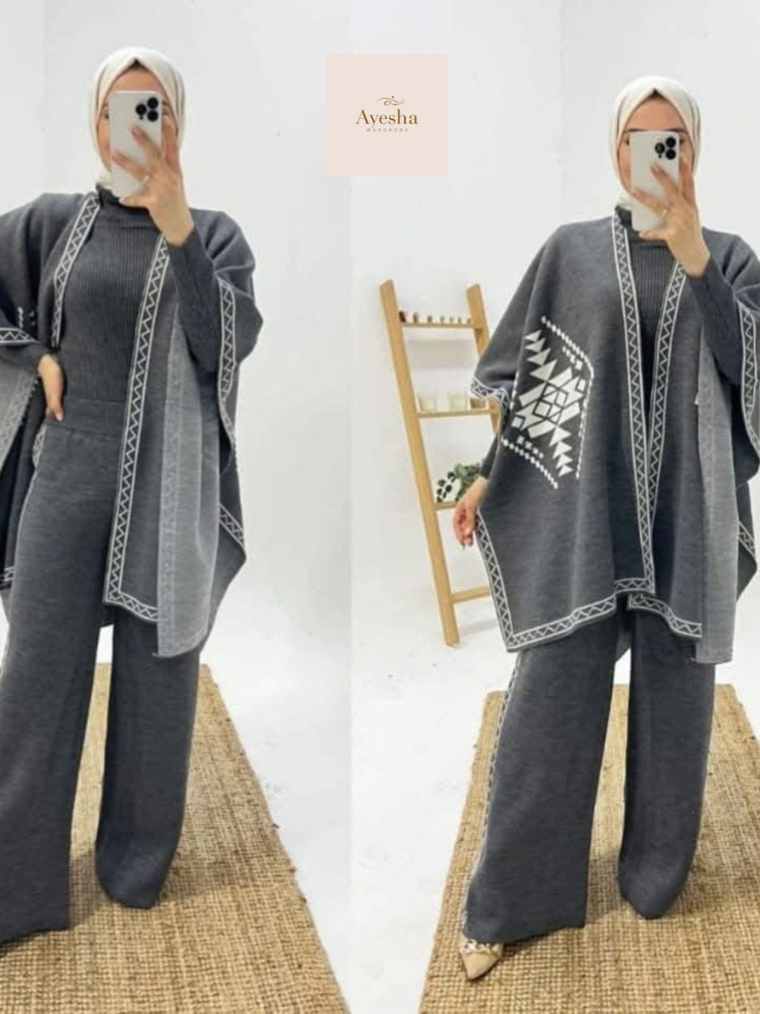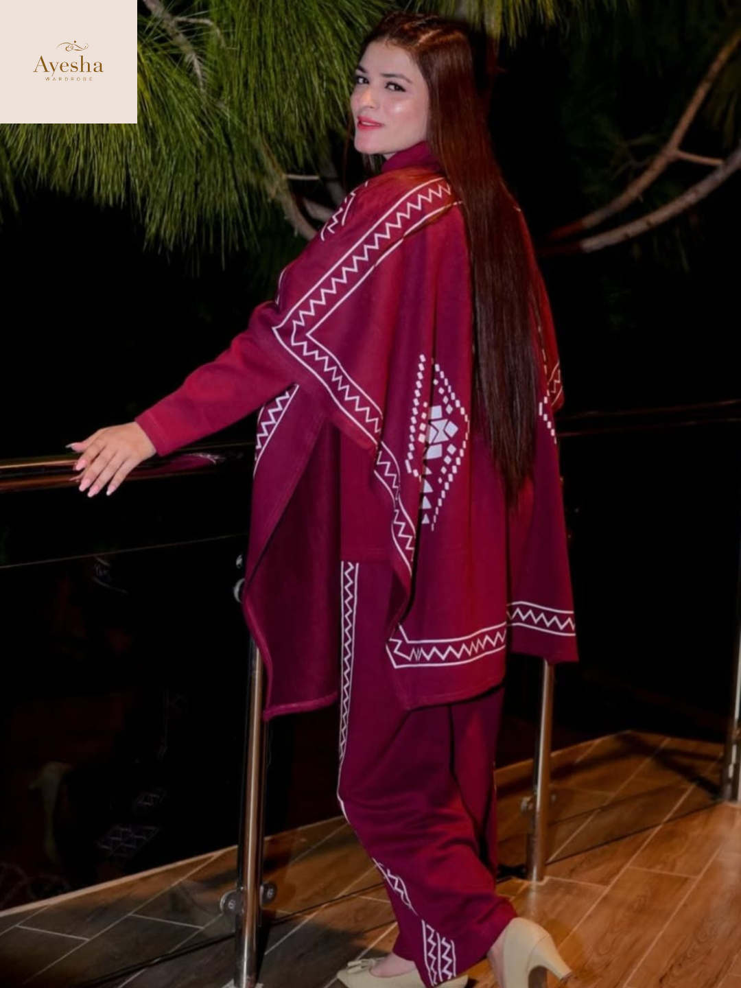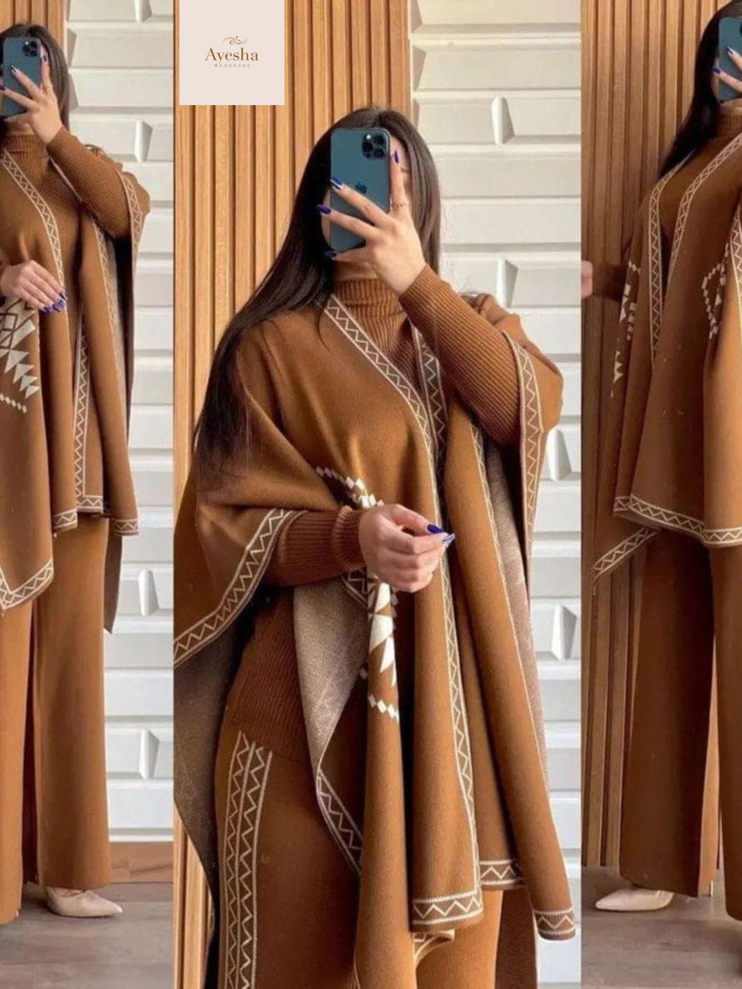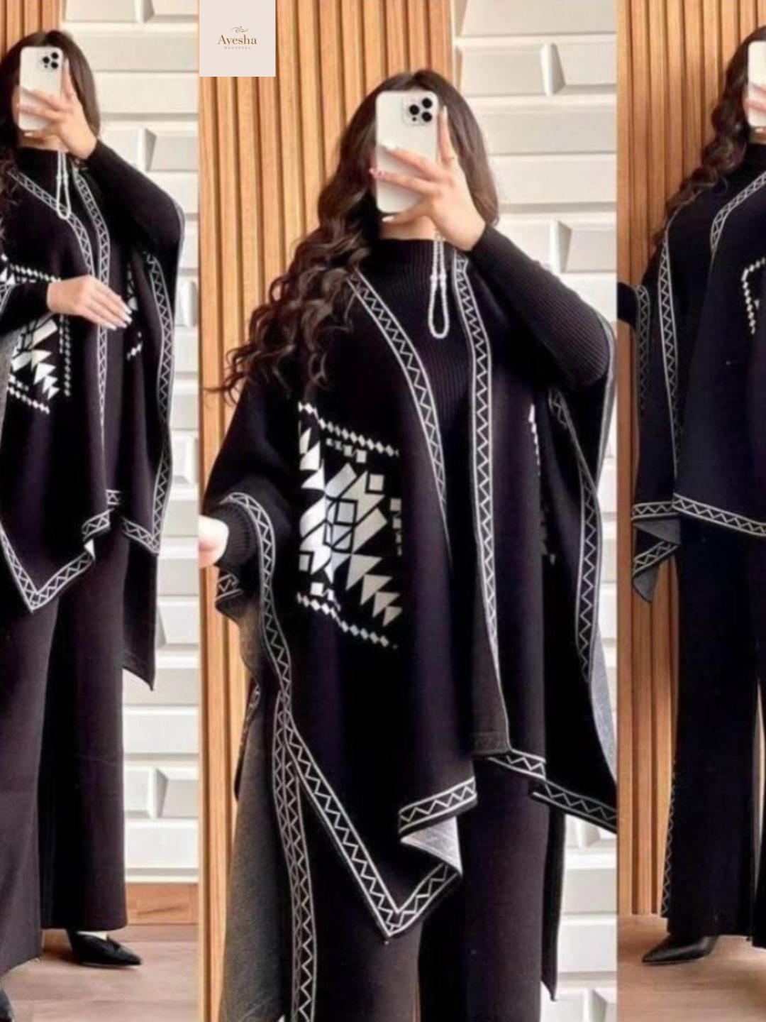 Stay warm and stylish this season with our Front and Back Printed Upper Shawls 3-Piece Set, crafted from premium double fleece for superior comfort and warmth. This trendy winter ensemble includes: