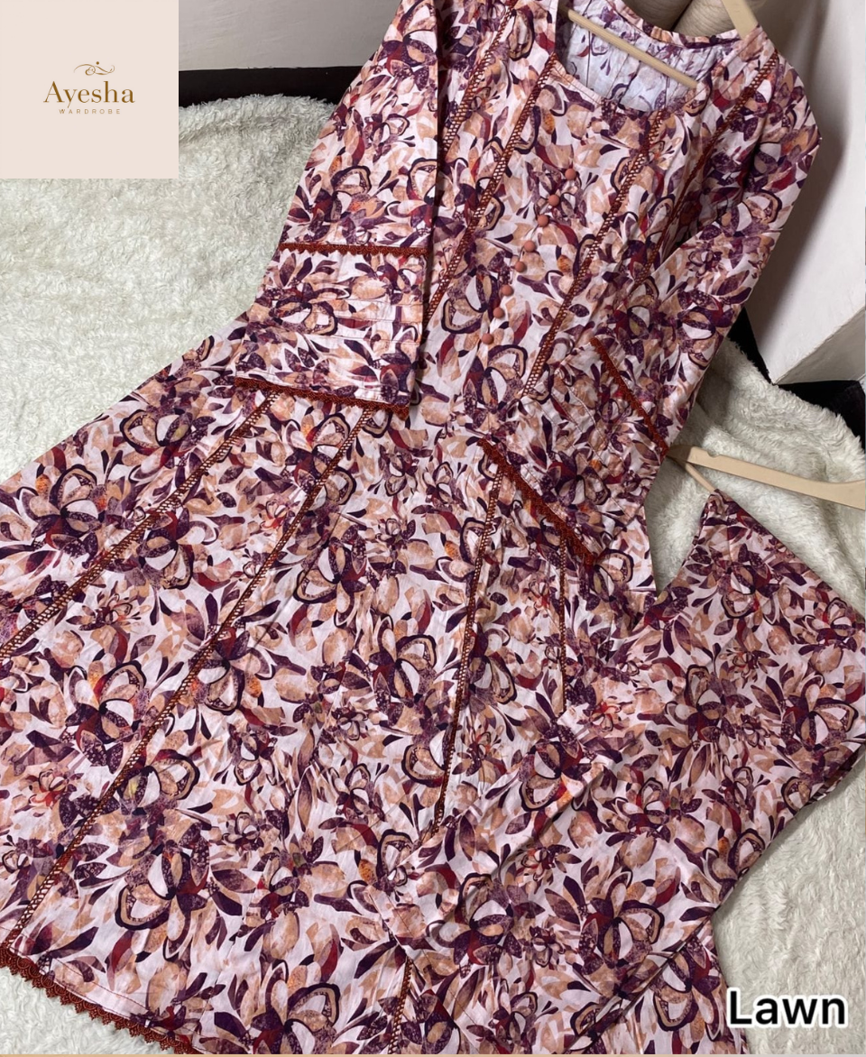 Elegant Pure Lawn Frock soft, breathable, and stylish with a graceful drape. Perfect for casual wear, festive gatherings, or warm summer days.